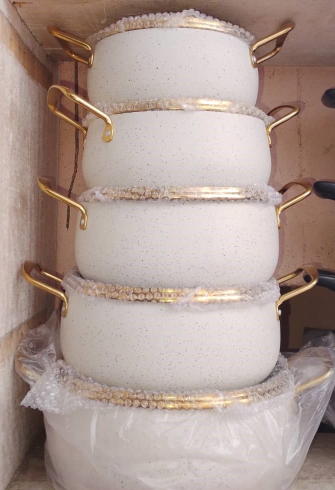 Elevate your kitchen with this stunning 5-piece granite cookware set. This elegant and durable set features a stylish granite finish with gold-toned handles, offering both exceptional performance and a luxurious look. The non-stick surface ensures easy cooking and cleanup, making it a perfect addition for any home chef.